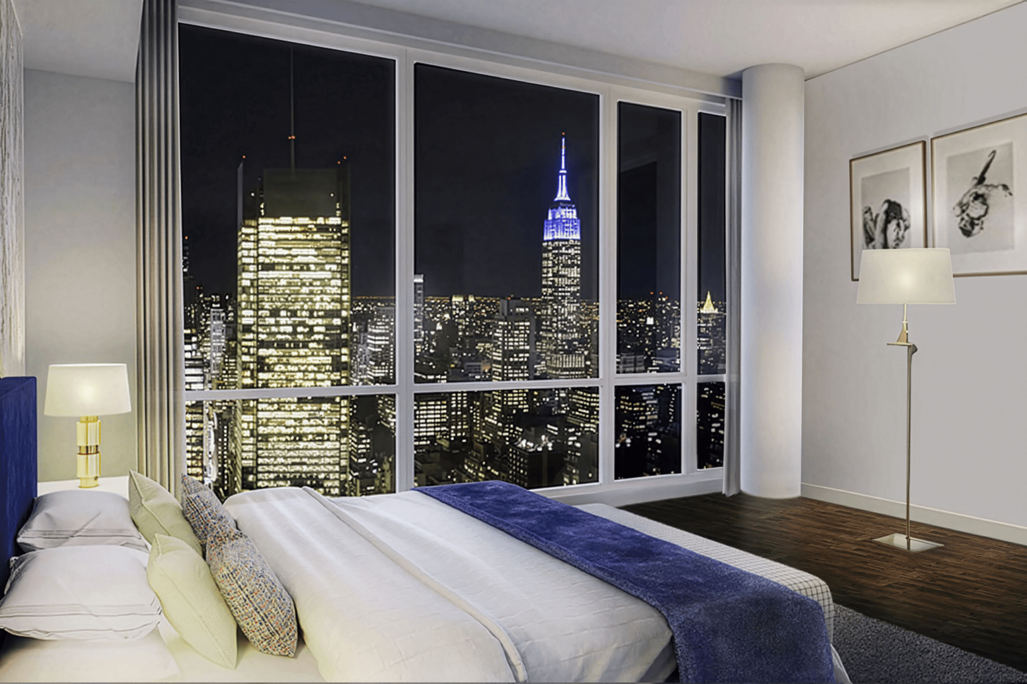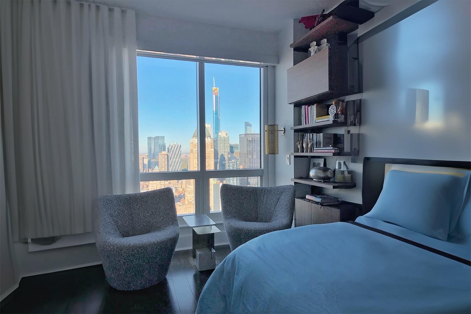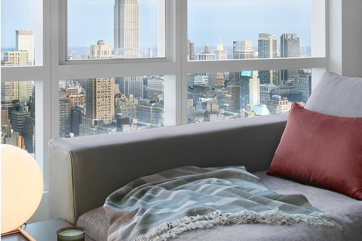 Perched high above the city’s heartbeat, the Times Square Residence spans more than 1,200 sq. ft. of refined living space with panoramic views stretching from the Empire State Building to the Hudson River.