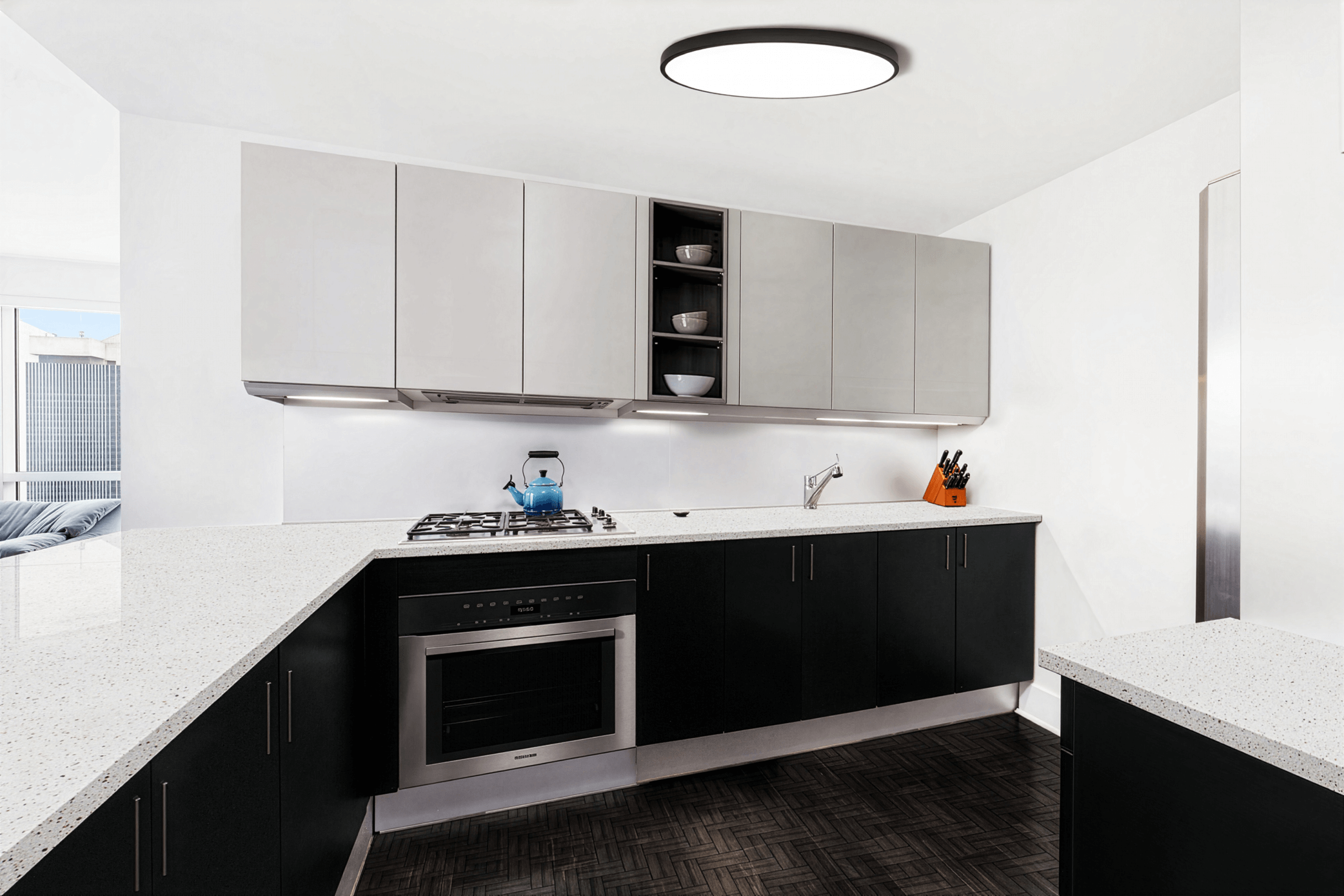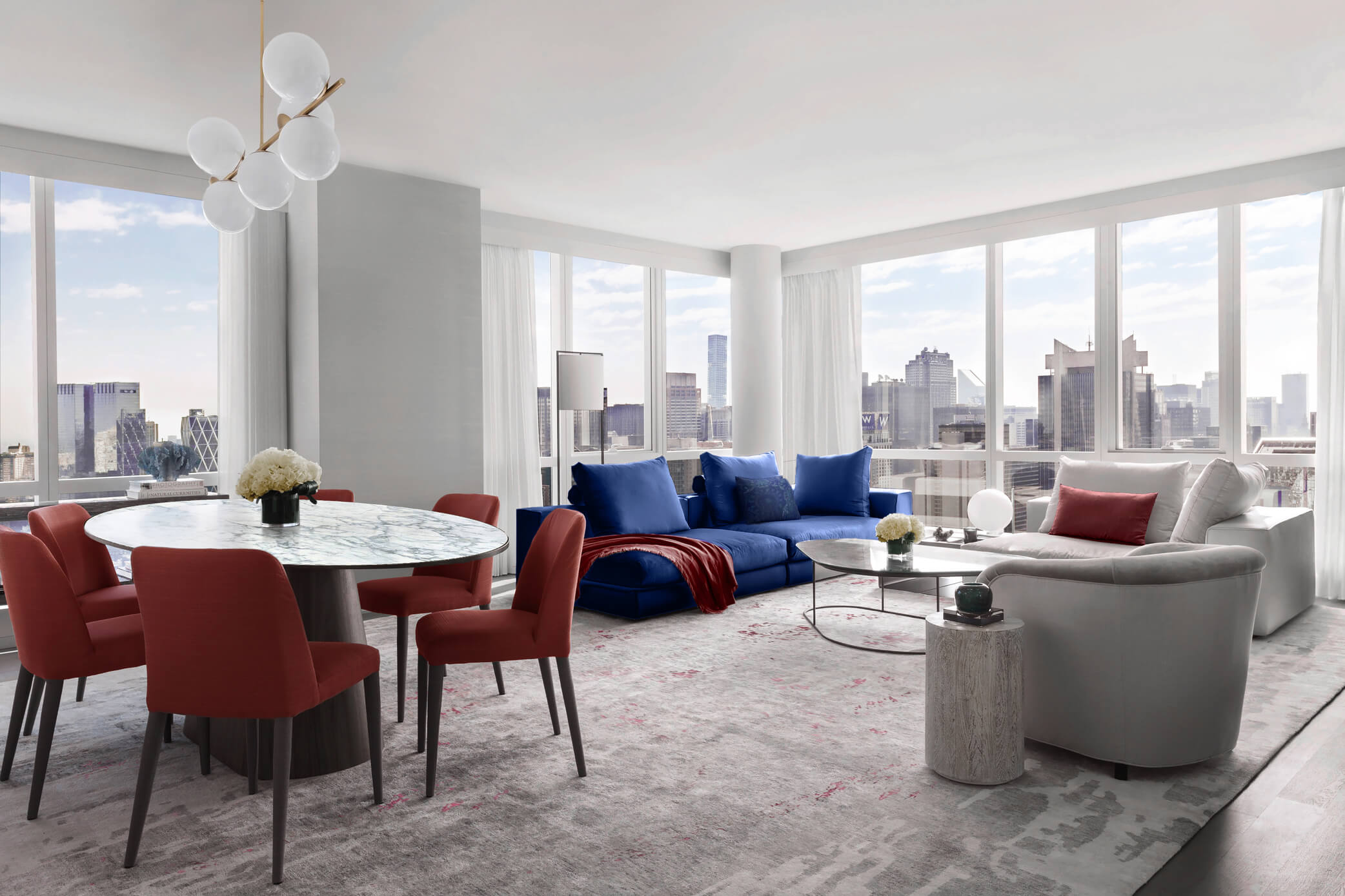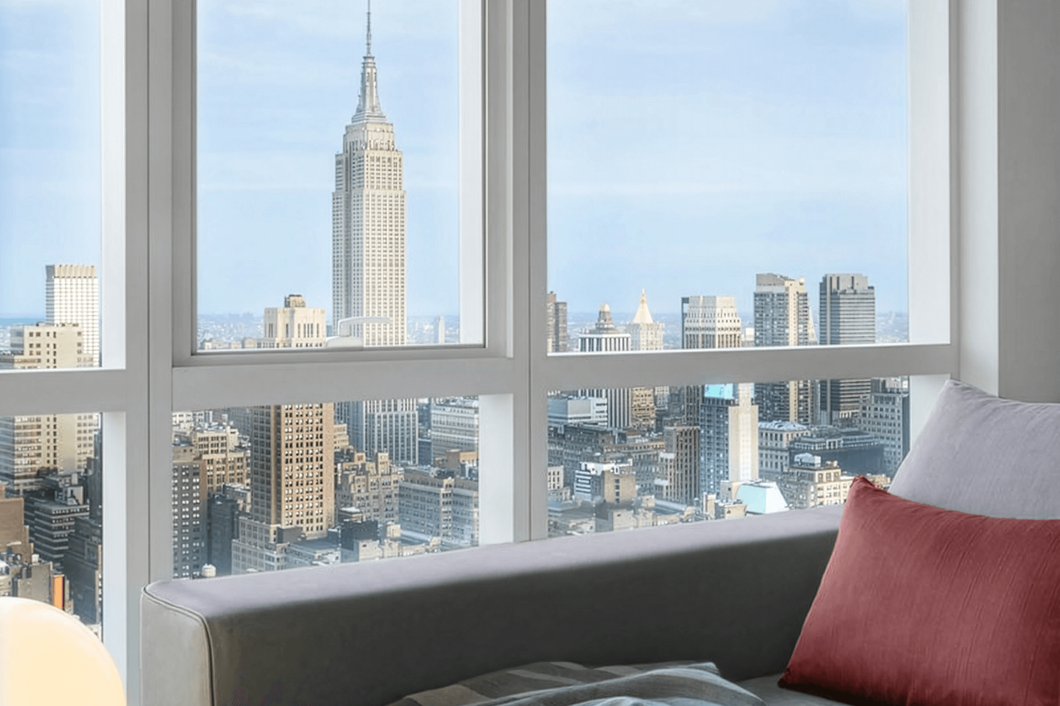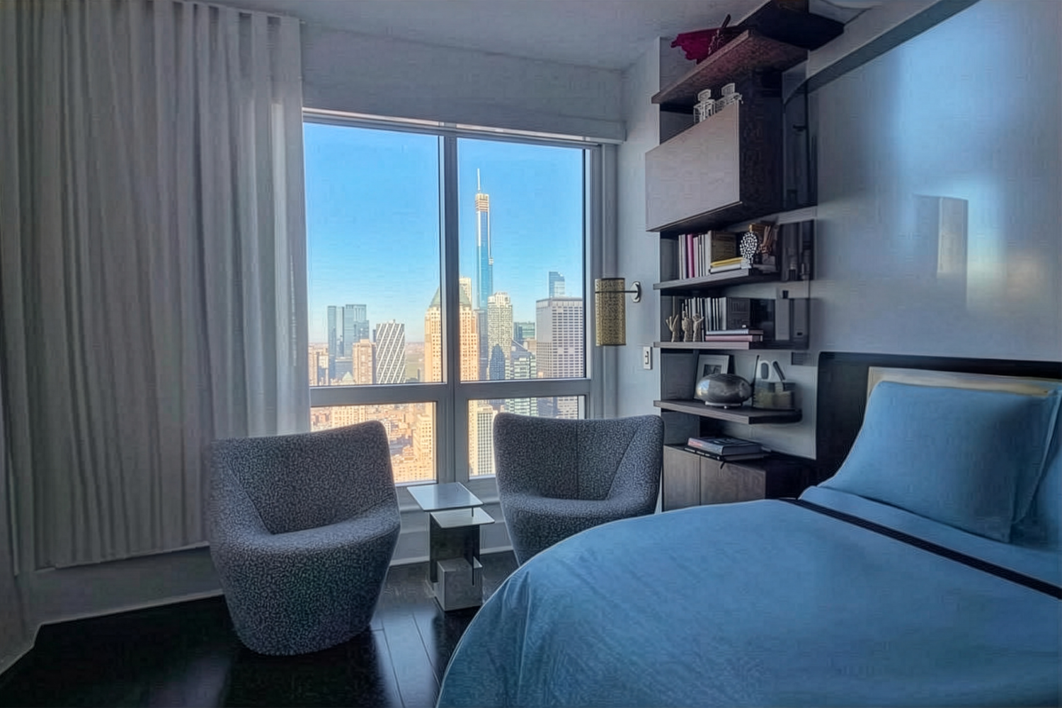 Perched high above the city’s heartbeat, the Times Square Residence spans more than 1,200 sq. ft. of refined living space with panoramic views stretching from the Empire State Building to the Hudson River.