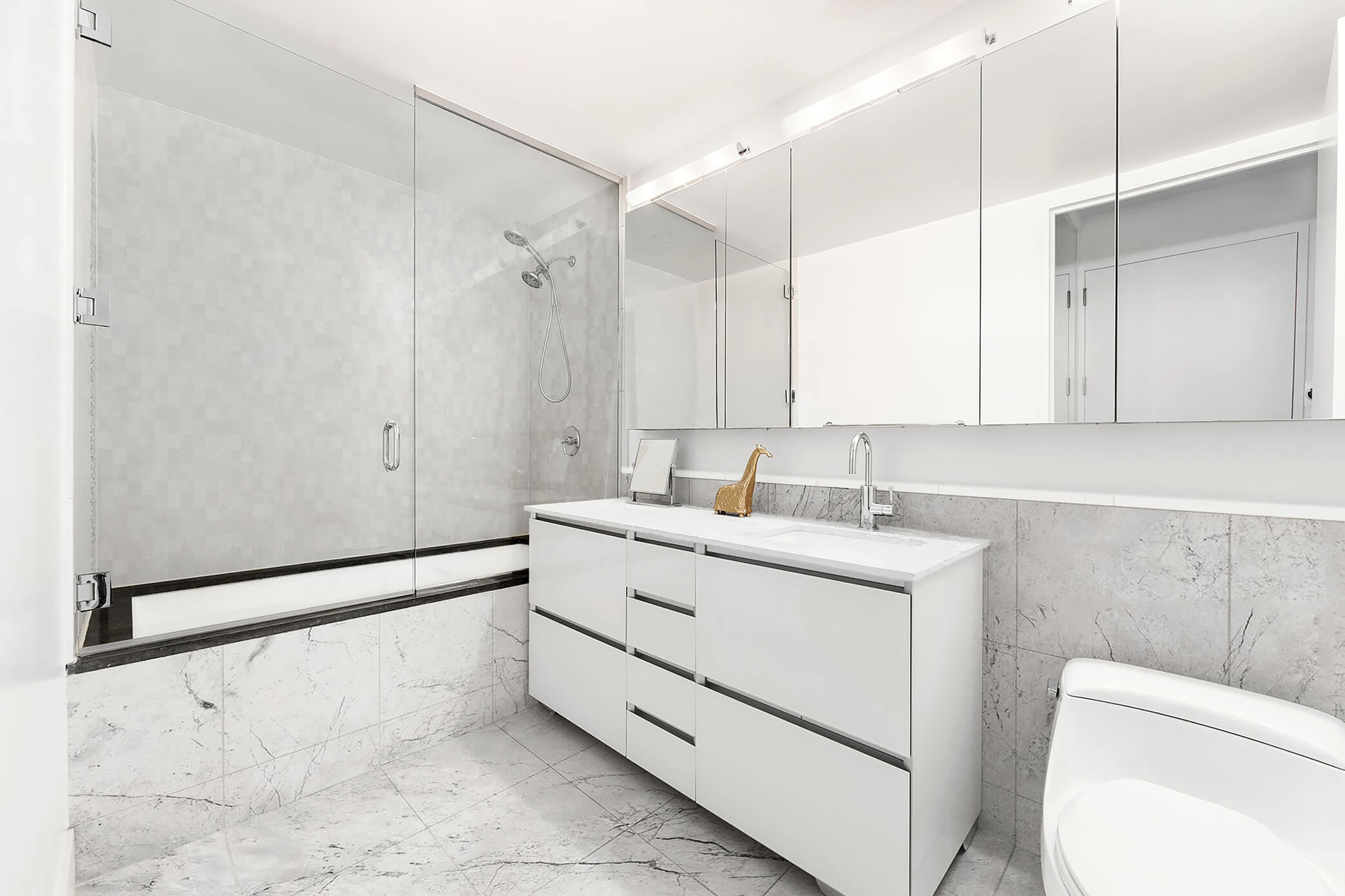 Residents enjoy the privileges of a full-service tower: 24-hour doorman, professional fitness center, sundecks, lap pool, jacuzzi, sauna, private screening rooms, and business facilities. Despite its prime address at the center of New York City’s energy, the residence remains a serene retreat—an oasis above the bustle.